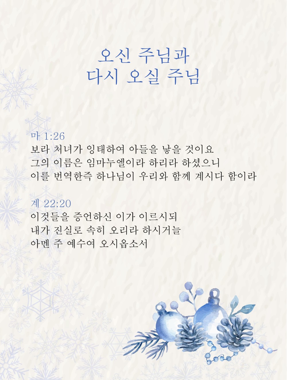 오신 주님과 다시 오실 주님
